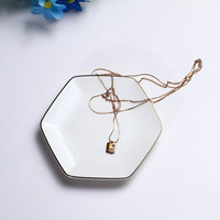 Custom Logo Gold Rim Hexagon White Ceramic Jewelry Tray Ring and Necklaces Trinket Dish for Wedding Gift